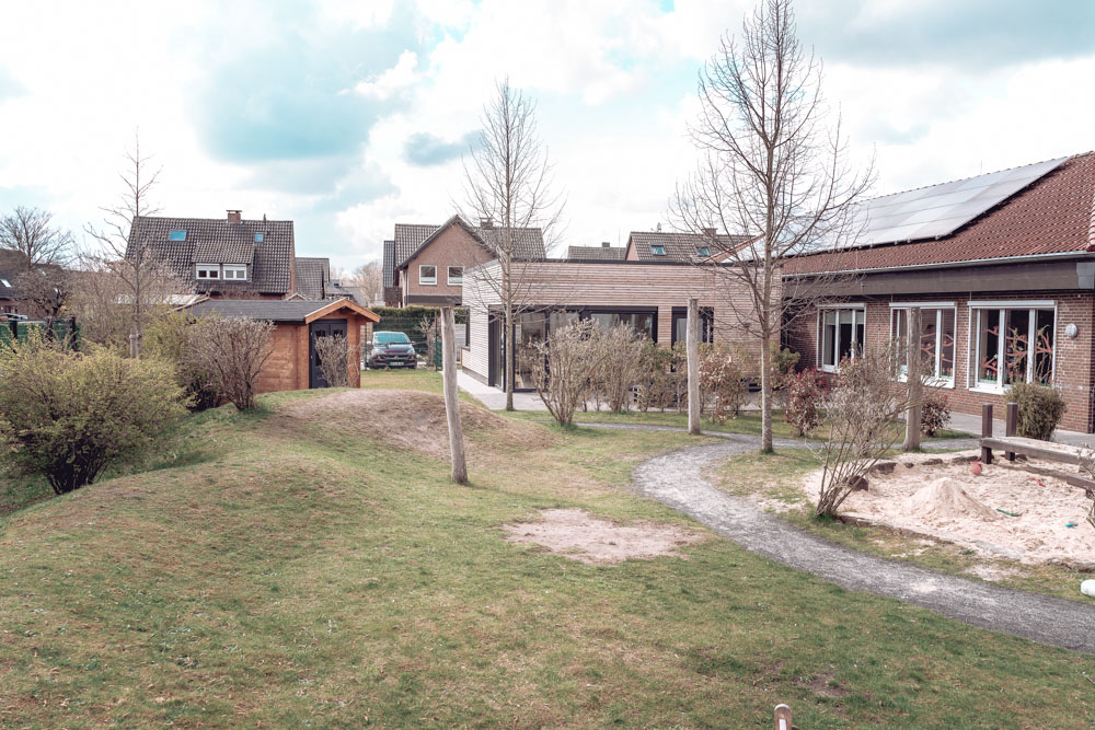 Gelegen am Mumbecker Bach und von Wäldern umgeben, gibt es ein großes, naturnahes Außengelände mit Möglichkeiten zu vielfältigen Sinneserfahrungen.